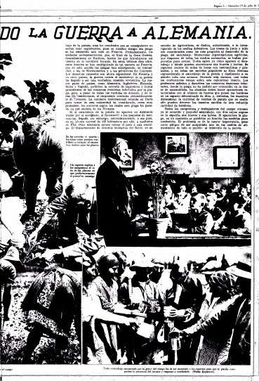 Terminaba dicha información con estas heroicas argumentaciones: “Todos los campesinos y trabajadores del campo (se le olvidó poner los niños de los colegios) conocen ya al amarillo y pequeño escarabajo, con diez rayas negras en la espalda, sus huevos y sus larvas. Si apareciese la plaga (que apareció), en un momento se pondrían en función las medidas para combatirla. El problema es de la mayor importancia, pues corre peligro de ser aniquilado uno de los medios de alimentación de todo un pueblo: el tubérculo de la patata”, hecho (ojo que no es falta de ortografía) de menos en esta información del diario ‘La Vanguardia’ el célebre saludo ‘Heil Hitler!’, menudo papanatas era el periodista que escribió el artículo.
