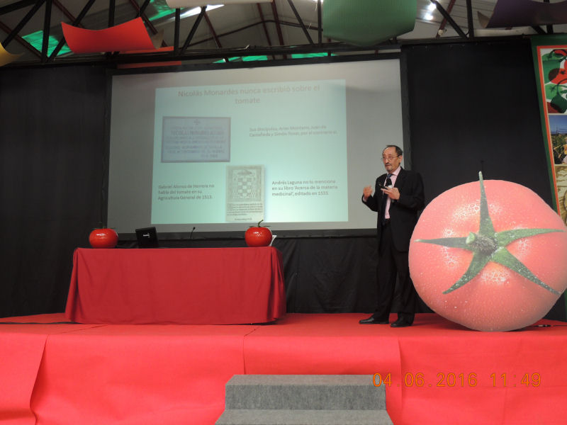 El autor de este trabajo impartie4ndo la conferencia en Gran Canarias sobre la Historia del Tomate