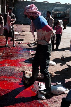 Raydah (Yemen). Carnicero en el zoco