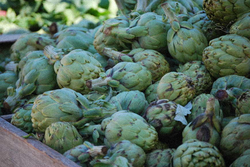 Sin embargo, aún hay hortalizas que se resisten a los tiempos modernos, como las alcachofas (Cynara cardunculus L. var scolymus (L.) Fiori), que prácticamente sólo se encuentran en su momento—y ¡qué momento! Desde las frescuras otoño-invernales, y alargándose hasta cuaresma y más allá, son los días de alcachofas a la plancha, alcachofas a la cazuela con jamón, alcachofas rellenas, fritelle di carciofi, pasta con alcachofas, pizza con alcachofas (riquísima la combinación con gorgonzola)…