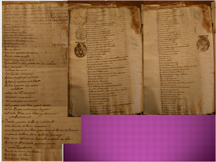 Pero, ¿qué tenía de especial este fajo de documentos coloniales que ahora me hace tratar de escribir al respecto?, pues la lista de géneros de botica que incluía el testamento del occiso y que estaba en pleito. Resulta ser que, como parte de este listado, se encuentran los siguientes géneros: