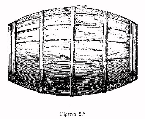 De todos modos, conocida la cabida de la barrica y la de las cubas de fermentación, y también la carga y el número de estas, es fácil determinar el número de aquellas necesario para el envase de toda la cosecha. Hechas las barricas con todo esmero, se procede luego á su lavado. Este tiene lugar con agua tibia ó caliente primero: luego con agua fría, y cuando ésta sale destituida de todo color, olor y sabor, se da por bien lavada la barrica. Antes de llenarlas con el vino, sin embargo se introduce en cada una de ellas un vaso de aguardiente, después de haber escurrido bien el agua; se tapa con su tapón bien torneado, que cierra herméticamente; se rueda contraesuelo y se levanta contra sus dos fondos alternativamente, para que todas sus superficies interiores se mojen bien con el aguardiente, ypuesta con el tapón hacia arriba, se deja hasta el dia siguiente. Llegado éste, se destapa y examina si en su interior se percibe algun olor que no sea el del aguardiente: en caso afirmativo, la barrica es desechada y aserrada por su mitad en el sentido de su eje menor, convirtiéndola así en dos cubetas. Si la barrica huele solo al aguardiente que se le echó, es buena para recibir el vino, dejando en ella dicho aguardiente. Este, á nuestro entender, lo mismo que el que se empleó para mojar las cubas de fermentación, después de servir para conocer ó descubrir todo olor extraño, sirve para atenuar ó neutralizar la acción del agua de que las barricas quedan impregnadas.