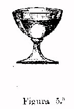 Lo propio decimos de la copa que se emplea para juzgar de la trasparencia y brillantez del vino. Esta copa es la que tenemos á la vista (figura 5.a). Es de plata. Su capacidad será como cosa de un decilitro: es más ancha que alta en la cavidad donde se recibe el vino. En su fondo y centro tiene una pequeña esfera, de plata también, soldada en la continuación ó extremo superior del pié. Siendo esta esfera perfectamente brillante, lo mismo que todo el interior de la copa, y poniendo en ella vino hasta cubrir la esfera interior tan sólo, se concibe que el menor cuerpo que esté en suspension en el vino, será descubierto al momento por los rayos de luz reflejados por las paredes laterales y fondo de la copa, lo propio que por los desprendidos por las paredes de la esfera de plata sumergida ó cubierta por el vino, y que forma un verdadero espejo esférico. Indudablemente esta copa es preferible á las ordinarias ó comunes, siquiera sean del cristal más puro é incoloro, para juzgar de la trasparencia, limpieza y Figura5.a brillantez de un vino.