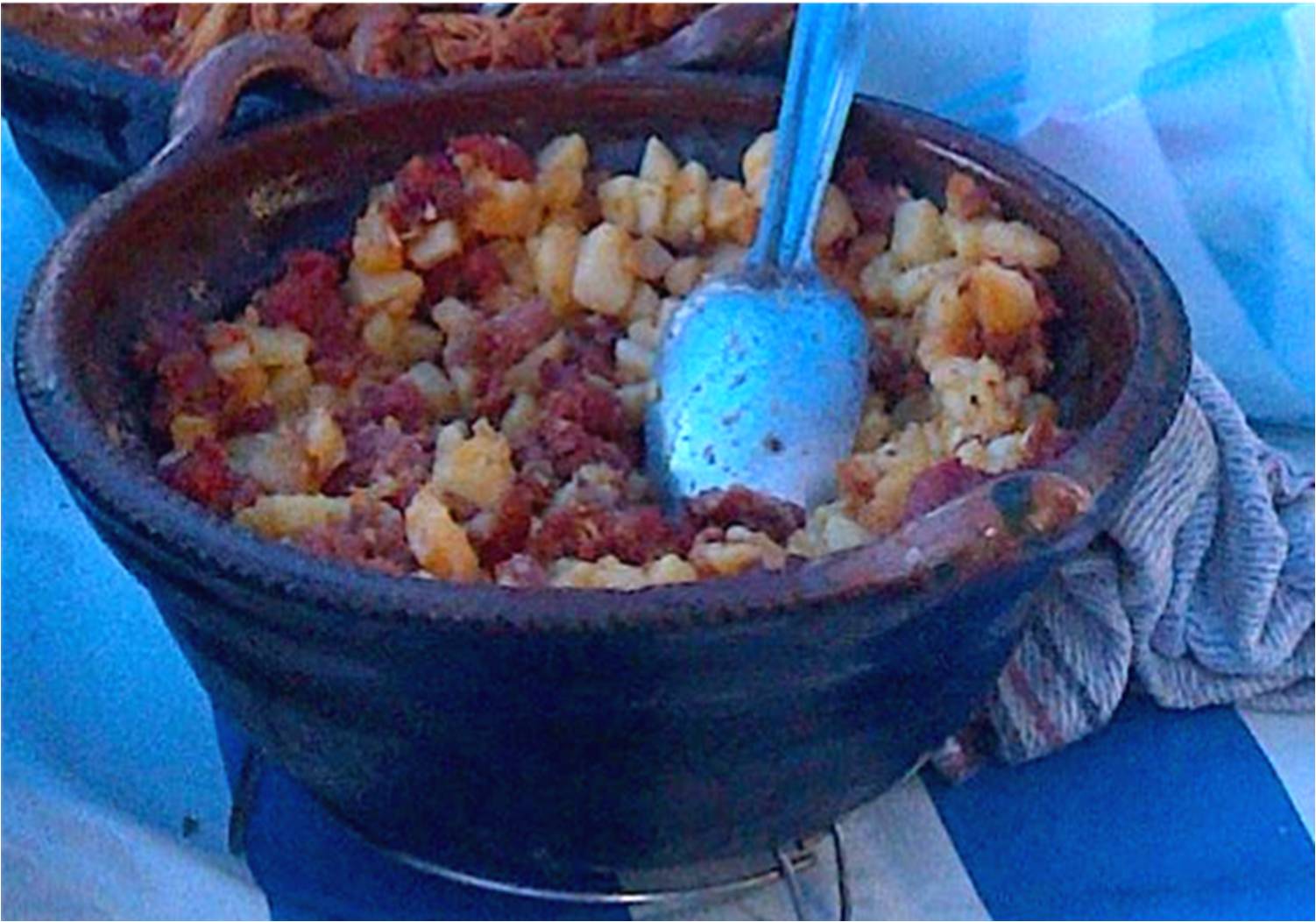 En mi escrito sobre Caltzontzin aparece, en una de las fotografías que tomé en esa ocasión que celebraban una feria gastronómica p’urhépecha en noviembre del 2008, una de las señoras cocineras que amasaba maíz azul en un metate. El maíz azul es una de las diversas variedades de este magnífico cereal que hay en México. Vale la pena aclarar que es un producto de la tierra americana, pero no en todas partes del continente se da de ese color, por ejemplo, en Mendoza, Argentina, no existe esta variedad y estando allá, cuando me casé y fui a vivir por un tiempo a esas hermosas tierras cuyanas en noviembre de 1987, yo extrañaba las exquisitas tortillas de color azul que comía aquí en el centro de la República Mexicana. Precisamente en la Feria del Maíz y otras semillas nativas, celebrada el día 8 de marzo pasado en la Comunidad Vicente Guerrero, del Estado de Tlaxcala, pude comer quesadillas azules con huitlacoche, el hongo del maíz, bañadas con salsa picante. Fue entonces que mientras las comía bebí una rica agua de chilacayote.