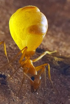 Sudáfrica) conocidas como Honeypotants (hormigas dulces o de la miel) pueden acumular un líquido azucarado semejante a la miel en grandes bolsas del abdomen. No todas las hormigas de la colonia tienen este comportamiento sino unas pocas, especializadas, que luego permiten que las demás se alimenten. Los aborígenes australianos las han consumido desde siempre. En el mercado hay abundante oferta de confitería basada en esta “miel de hormigas”.