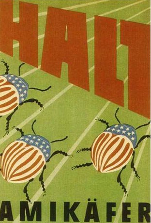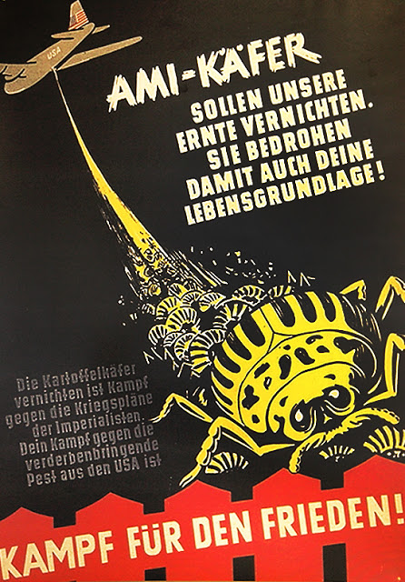 Como aportación a la historia de la patata quiero hacer mención a un hecho acaecido en plena Guerra Fría, qué más puede parecernos casi un chiste si no fuera por las consecuencias negativas que acarrearon entre la población de la República Democrática Alemana en unos momentos críticos, tras la Segunda Guerra Mundial, cuando la agricultura alemana, y de todo el Este de Europa, intentaba desesperadamente renacer tras el abandono de los campos y que atenazaba los estómagos de todos los contendientes europeos que tenían que partir de cero, sin semillas, y con el temor de los gobiernos a levantamientos populares sobre todo entre las poblaciones ocupadas.