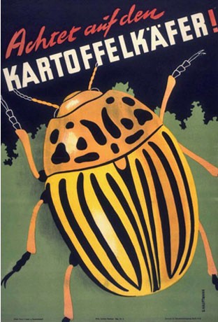 La propaganda nazi donde se quería dar la imagen de un pueblo muy disciplinado y tecnológicamente avanzado casi llega a rozar el ridículo cuando se lee lo siguiente: “El Departamento de Estudios Biológicos del Reich, en su Sección de Agricultura, se dedica, actualmente, a la investigación de los medios defensivos. Los meses de junio y julio son considerados como los más propicios al desarrollo de la plaga del escarabajo. Numerosas organizaciones agrícolas que disponen de todos los medios necesarios, se hallan preparadas para actuar. Todos saben ya cómo aparece el escarabajo y donde pueden encontrarse sus huevos y larvas. Se reparten cientos de miles de hojas con instrucciones y grabados, y en todas las escuelas populares se fijan láminas representando el escarabajo de la patata y destinando a su estudio toda una semana. Durante esta semana, casi todas las conferencias versan sobre este calamitoso insecto. Los profesores señalan y describen las comarcas francesas infectadas, donde la plaga no ha podido ser contenida; en las clases de matemáticas, los alumnos deben de hacer operaciones relacionadas con el número de huevos que ponen las hembras en un espacio determinado de días, y, entonces, los maestros demuestran la cantidad de retoños de patata que en medio año pueden devorar los insectos nacidos de una reducida cantidad de hembras”, hasta aquí todo parece perfecto, el gran estado fascista alemán pone a todos sus ciudadanos en estado de alerta ante una invasión de insectos, sus laboratorios preparados, su tecnología a pleno rendimiento; todo un país a punto para defender sus fronteras ante los invasores, lo malo de todo esto, el pequeño fallo, era que la más efectiva de las formas era coger animalito por animalito con la mano, meterlos en botes y al final de la jornada proceder a su destrucción, rustica forma de combatir un mal en un pueblo que quería sorprender al mundo al creerse una raza superior y que triunfaba en la mente de muchos por ser el primero que supo hacer propaganda.