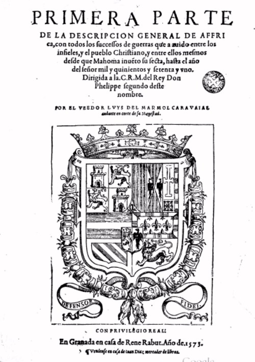Mármol Carvajal, Luis. Descripción general de África. Edit. Rene Rabut. Granada 1573.