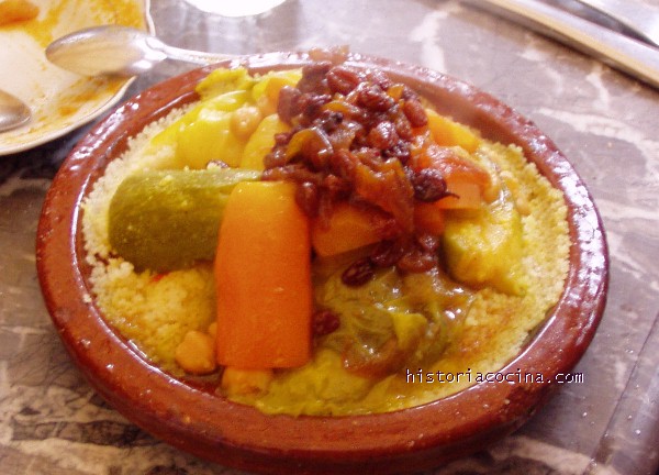 Ya entonces el plato natural y popular era el cuscús, o como lo llama ‘alcuzcuçu’ con carne de cabra o de oveja, por las razonas antes aducidas del terreno y que justifica de la siguiente forma: “Son más inclinados a comer carne de cabra, o de oveja que de carnero, o de vaca, porque dicen que es más sana, aunque deben de hacerlo por ser más barata”.