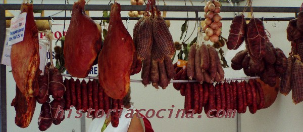 También Columela nos dice que los galos solían salar las patas del cerdo, dejándolas en lugares aireados y fríos y que se exportaban, una vez curados, a Roma, es la primera noticia que se tiene de los jamones, siendo su forma de elaborarlos igual que hoy se hace en la zona de la Alpujarra granadina.