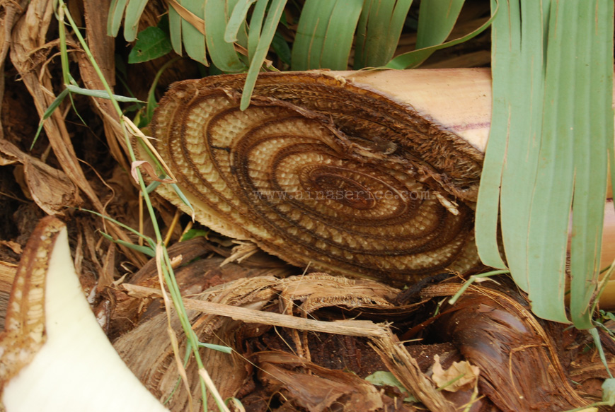 Como puede observarse, no todo se queda en la fruta: las hojas, e incluso el pseudo-tallo son útiles y necesarias en la cocción del matoke.