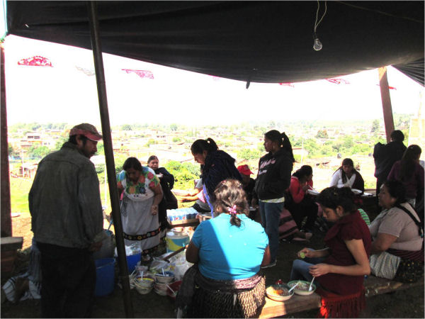 Gente comiendo el pozole (Foto de la autora de este escrito)