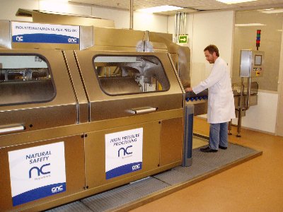 TRATAMIENTO POR ALTAS PRESIONESEl tratamiento por altas presiones, también llamado pasteurización hiperbárica, es un proceso de conservación de alimentos consistente en introducir los productos a tratar, envasados previamente en recipientes herméticos y flexibles, en una cámara llena de agua y someterlos a alta presión hidrostática durante unos minutos. Concretamente los platos del Menú Barcelona se sometieron a 6.000 bares durante 6 minutos. Los alimentos sometidos a este tratamiento conservan perfectamente sus características organolépticas (textura, color, sabor...) y nutricionales. El tratamiento prolonga la vida útil del producto debido a que reduce drásticamente la flora microbiana contaminante y patógena. En los procesos habituales no se consigue asegurar la salubridad total del alimento debido a que el tratamiento no destruye completamente todos los enzimas ni las esporas bacterianas. Por ello los alimentos deben conservarse en refrigeración. Con este procedimiento se han tratado los platos del Menú Barcelona cuyas características organolépticas se resentían al aplicar cualquiera de los otros dos sistemas de conservación. Se están llevando a cabo estudios para realizar tratamientos combinados con las altas presiones que aseguren la calidad nutricional y sensorial (imposibles de conseguir por los otros dos métodos de conservación) y permitan asegurar la calidad sanitaria del alimento sin necesidad de línea de frío.