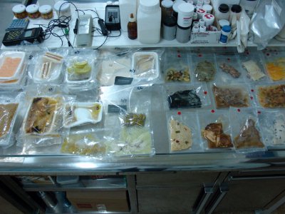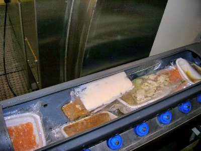 3. NUTRICIONAL Una dietista (Asunción Rovira) veló por la calidad nutricional del Menú Barcelona. El Menú se diseño con la posibilidad de combinar los distintos platos presentados para poder ajustar los requerimientos nutricionales a las necesidades del momento. Se hizo especial hincapié en controlar el aporte calórico y repartir el aporte energético de una forma equilibrada entre los glúcidos, las proteínas y los lípidos. Se trató, en lo posible, de que las cantidades de vitaminas y minerales necesarios fueran aportados por los propios ingredientes de la dieta. En caso de déficit se pensó en incorporarlos en forma de complejo vitamínico-mineral. Los tratamientos de conservación también influyeron en la cantidad de vitaminas y otros nutrientes. La esterilización fue el sistema que más las afectó a las vitaminas ya que muchas de ellas son termosensibles y se destruyen por el calor. La ionización, por su poder oxidante, alteró la composición en ácidos grasos poliinsaturados. Nuevamente el procesado por alta presión hidrostática se desveló como el mejor sistema para conservar la calidad nutricional de los productos. 4. ENVASADO El envasado también tiene sus peculiaridades cuando se trata de comer en el espacio. En primer lugar el envase debe ser adecuado y soportar el tratamiento de conservación. Así el envase para la esterilización debe aguantar las altas temperaturas durante el tiempo requerido; el envase para las altas presiones debe tener, como mínimo, una cara flexible y el envase para la irradiación no debe contener compuestos clorados. En segundo lugar el envase debe mantener las características del alimento. Por este motivo se buscan materiales de alta barrera a los gases, a la humedad y a la luz y se debe controlar la estanqueidad del sellado para evitar la recontaminación posterior. En tercer lugar debe de ser un envase cómodo de usar, de abrir, de almacenar antes de su uso y de eliminar tras ser vaciado. En general debe ocupar poco espacio. Por este motivo se tiende a usar envases flexibles de plástico, tipo bolsa, y cada vez menos envases rígidos de metal, tipo lata. 5. FACILIDAD DE USO El Menú Barcelona, pensó también en este aspecto del producto, tanto a nivel del envase como del contenido. Aunque las bolsas de plástico de alta barrera cumplen con la mayoría de requisitos, en general no son cómodas de usar. En nuestro desarrollo se buscó un envase semirrígido, tipo barqueta de plástico, con una tapa de plástico flexible fácilmente pelable. De este modo queremos ofrecer mayor comodidad al astronauta al no tener que usar tijeras para abrir las bolsas y poder comer directamente de la barqueta. El diseño del envase hace que se pueda apilar, uno dentro del otro, una vez vacíos y así no ocupar demasiado espacio. El tipo de alimento que compone el menú está preparado en trozos de un solo bocado, para evitar el uso de cuchillos. El alimento se debe comer con cuchara ya que la mayoría de platos llevan una salsa. Esta salsa es necesaria para que las partículas (arroz, guisantes...) o los trozos (pollo...) queden adheridos entre sí y también al plato. De esta manera se evita que, debido a la ingravidez, floten. Otros aspectos a tener en cuenta cuando se piensa en comida para el espacio son: - Los productos no pueden producir migas, como hacen el pan o las galletas, ya que éstas pueden flotar y obstruir los filtros del aire o bien pueden meterse en el ojo de los astronautas. - Generalmente no se aliñan los productos, o al menos no como en la tierra. Es imposible añadir sal como tal, se debe añadir como salmuera e, incluso así, el proceso es complicado para que no floten las gotas de salmuera por la estación. Lo mismo ocurre con el aceite y vinagre.