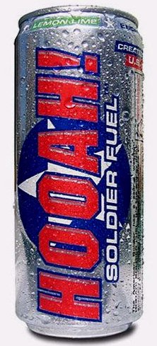 Como los yanquis son rápidos para los negocios y tras una intensa campaña de publicidad en la cual se hacía referencia a testeos por parte de los laboratorios de las fuerzas armadas, lanzaron al mercado con el mismo nombre de HooAH! pero sin el apoyo del Departamento de Defensa, una bebida energizante con el eslogan: “El Soldado americano tiene su arma secreta: Hooah! El combustible del soldado.” La barra en cuestión de 65 gr. se produce en los sabores de chocolate y canela, cada una con 280 calorías, 10 gramos de proteína de la soja, 9 gramos de aceite de palma no hidrogenado, 42 gramos de carbohidratos simples y complejos más 15 vitaminas y minerales. En todo caso, las barras HooAH! apreciadas por los soldados en Afganistán e Irak que comenzaron a recibirlos como parte de su MRE diario. Referencias: U.S. Army Soldier Systems Center-Natick Public Affairs Office |
