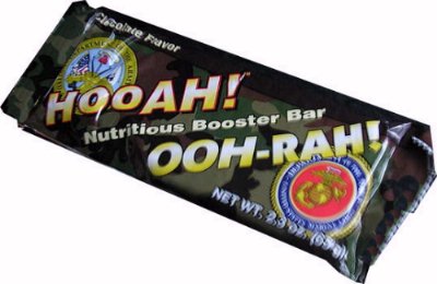 El chocolate con las actuales directivas de las fuerzas armadas norteamericanas para la alimentación militar ha dejado de tener un papel preponderante al ser reemplazado por un nuevo producto que responde en mayor medida a las necesidades nutricionales que requiere un soldado en combate en la actualidad con el agregado además, de tener superado el problema del sabor , dureza y conservación, factores que han sido permanentes motivos de quejas de sus consumidores como ya hemos visto en la nota sobre La Historia del Chocolate en las Fuerzas Armadas. Este nuevo producto creado en 1996 lleva el extraño nombre comercial de HooAH! y fue desarrollado por la Dirección del Departamento de Alimentación de Combate de la Defensa de los EE.UU. cuyo centro se encuentra en Natick, Massachussets en cooperación con M&M Mars Inc. El contenido principal de la barra es un compuesto de jarabe de maíz, proteína de soja, fructosa, maltodextrina (un carbohidrato fácilmente digestible hecho del almidón de maíz) lecitina de soja y riboflavina (vitamina B12) entre otros y cuyas variantes de consumo cotidiano se encuentran en las denominadas barras de cereales o granolas pero a diferencia de estas, las Hooah! tienen otros componentes que además de aumentar el nivel energético y nutricional reúne los requisitos de almacenaje previsto por el Departamento de Defensa cuya conservación debe ser de tres años a 80ºF (26.66ºC) o seis meses a 100ºF.(37.77ºC). Hooah! es la abreviatura de H.U.A Heard, Understood and Acknowledged (Oído, Entendido y Reconocido) una respuesta similar al “¡Oído!” de los cocineros ante el pedido de una comanda, que tienen los militares, sin embargo el envoltorio original de esta barra cuando fue producido por M&M Mars exclusivamente para las fuerzas armadas llevaban los nombres de Hooah! y ooh-rah! equivalente al “hurra” y empleado por la marina de guerra como expresión de alegría y satisfacción.
