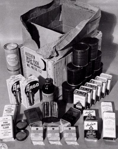 Panorámica de Especias Para las zonas donde el ejército norteamericano se había establecido definitivamente tras el desalojo de las fuerzas enemigas, se enviaron paquetes con especias ( Kitchen Spice Pack) para las cocinas ya instaladas en bases y campamentos militares fijos, que contenían especias y sal para 1000 raciones, es decir, 100 hombres por día por 10 días, además de utensilios de cocina. Básicamente el menú estaba compuesto con la ración B. Entre otras raciones diseñadas para propósitos muy concretos están las de primeros auxilios y para hospitales, ambas contenían exclusivamente bebidas (te, zumo en polvo, etc.) La Ración de combate C se mantuvo con algunas modificaciones durante la guerra de Corea (1951-1953) y Viet Nam (1959-1975) si bien durante este último escenario los especialistas en alimentación militar habían desarrollado una ración denominada LRRP (Long Range Reconnaissance Patrols) consistente en comida liofilizada (carne deshidrata envasada al vacío) y que derivó hacia 1981 en la actual ración de combate conocida como MRE, abreviatura de Meat Ready to Eat (Comida lista para comer). |