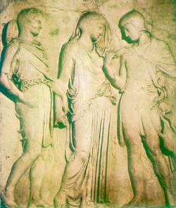Dionisos fue el único que pudo convencerlo que existía una alternativa a su muerte por inanición y que esta opción no era la única manera de alcanzar el anhelo de reunirse lo mas pronto posible con su amada Eurídice. Dionisos le dijo que era el momento de luchar y no dejarse morir, deberían unir fuerzas y tratar de arrancarle al destino tan fatal decisión. El le enseñaría que hacer. La reacción de Orfeo fue inmediata, decidió ir donde Hades, en el reino de las tinieblas, para buscar a su esposa fallecida. Hades, hermano de Zeus y Poseidón, era el soberano de los espíritus de los muertos, es el despiadado e inexorable enemigo de todo lo que represente vida y odiado por este hecho por los dioses y los hombres. Tenia como fiel guardián al can Cerbero de tres cabezas y el pelo formado por serpientes, este horrible ser dispensaba una afectuosa acogida a los que entraban a sus dominios, pero si alguno pretendía salir tenia que enfrentarlo y evidentemente esto era muy difícil por su enorme poderío. Es celebre la historia de Hades y Perséfone, un día la hija de Zeus y Deméter, siendo aun doncella, mientras recogía flores cerca de su casa en Ena, Sicilia fue sorprendida por Hades quien la rapta y conduce en su carro de fuego al mundo de las tinieblas. Su madre Deméter, acude donde el poderoso Zeus a pedir ayuda y venganza y le recuerda tiempos pasados. Para calmar la ira de la diosa de la agricultura, el soberano del cielo envió a Hermes a traerla de vuelta, pero se encuentran ante una realidad, Perséfone ya es la esposa de Hades, quien la a hechizado con un poderoso filtro de amor. Deméter insiste, necesita a su hija, por que es el vehículo de la fertilidad de los campos y sin su presencia todos los prados serán estériles. Llegan a un acuerdo final, dos tercios del año Perséfone permanecería con su madre en el mundo superior, al termino de ese periodo tenia que regresar con su marido y gobernar como la diosa sombría de la muerte. |