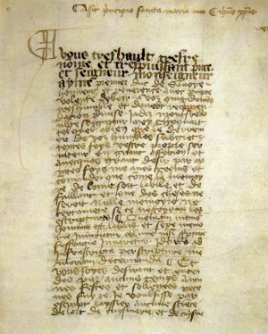Con motivo de la exposición del libro ‘Fait de cuisine’, escrito del maître Chiquart, en la Mostra: Cortes y Ciudades del Cuatrochento en los Alpes Occidentales, que se celebró en Turín en el año 2006, tuve la suerte de conocer este volumen, editado por primera vez en el año 1420, gracias a mi amiga y compañera en la revista CIBERJOB, Montse Borrás, que me procuró una copia en uno de sus viajes a ese país. Todo hace indicar que el texto que llega hasta nuestros días es una copia efectuada en los primeros años cuarenta del siglo XV hecha por Jean de Dudens, clérigo de la bella ciudad de Annecy, sin que se tenga conocimiento de que existan otras. El texto está escrito en letra gótica cursiva y el volumen es modesto comparado con otros de la época. La importancia de este libro es grande, como iremos descubriendo, ya que, independientemente de las fastuosas recetas de cocina, encontraremos relaciones políticas y culturales de la época dentro del contexto de poder entre los distintos estados, los cuales rivalizaban entre sí creando las primeras relaciones diplomáticas basadas en la cultura y las buenas formas, alejándose de la fuerza que caracterizó toda la Edad Media, y donde la cocina ocupa un puesto preeminente como consecuencia de ser lugar donde se celebraban todos los acontecimientos y que mostraban la autoridad del estado.