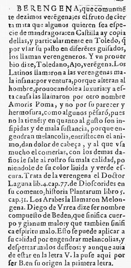 berenjenas, según la opinión de otro árabe, Abu el Jai, "las