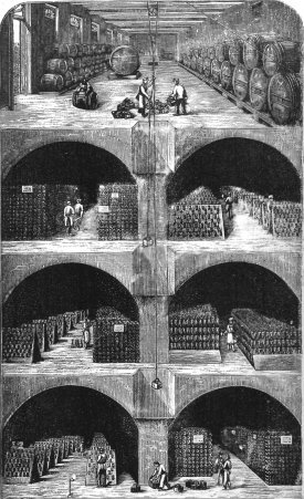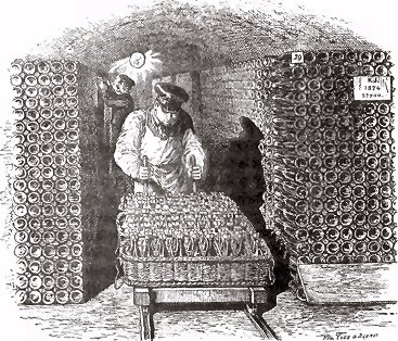 Creo que sería bueno hacer referencia de los gustos por los vinos y licores en la Corte en esa época y nada mejor que echar un vistazo al suministro del proveedor al Real Palacio en el año 1839, en donde no figura el champán entre los de esta provisión, que estaba compuesto por: Pajarete blanco y tinto; Moscatel de Jerez; Jerez dulce; Sanlúcar; Jerez seco; Jerez abocado; Guinda; Malvasía de Sitches; Lágrima; Moscatel; Montilla; Tintilla de Rota; Manzanilla; Amontillado; Alicante; Generoso rancio; Fondelló; Pedro Ximenez; Málaga; Peralta; Tudela; Rueda; Valdepeñas. En la lista de licores figuran los siguientes: Marrasquino; Noyó; Midaya; Anisetes; Curasao; Arqueme; Placca de Damas; Leche de viejas; Cuatro frutas; Perfecto amor; Aceyte de Venus; Cicrado; Crema de moca; Aceyte Luisa; Menta; Estracto de café; Crema de vaynilla; Crema de quina; Bergamota; Ajenjos; Rosa; Licor de oro; Licor de plata; Crema de guinda. Entre los aguardientes: Ron de Jamaica; Del Reyno; Aguardiente de cañas; Pura de Bayona; Andaya; Coñac; Ginebra; Francia; Seco; Anisado; Cinchón; Quin Vayrer. Y los vinagres: De París; Marsella; Destilado; Yema; Estragón. Datos obrantes en Archivo del Palacio Real, Sección Administración, Legajo 923 (los nombres son tal cual están escritos). Lo mismo ocurre en la relación de vinos y licores existentes en la Cava de Palacio que se efectuó en el año 1869 (Archivo del Palacio Real, Sección Administración, Legajo 891), donde tampoco figura el champán pese a la larga lista existente, y donde también se incluyen los vinos procedentes de regalo y cuya lista está nutrida por miles de botellas de todo tipo de bebidas alcohólicas.