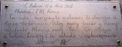 El 1 de marzo de 1908 se hace inventario de la bodega real, donde, de 10.346 botellas de entre vinos y licores, hay en existencias las siguientes cantidades y marcas de champán: 186 de Pommery; 648 de Cordon-Rouge enteras; 38 de Cordon-Rouge medias; 80 de Ayala extra 1868; 380 de Ayala corriente; 91 de Ayala media botella; 117 de Albert; 681 de Tisana de Champagne; 12 de St. Marceau; 12 de Ruinart; 12 de F. Harmel; 12 de Legres Pagnon; 36 de J. J. Vegas seco; 36 de J. J. Vegas continental.