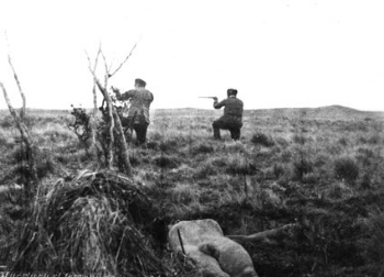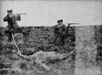 LA CAZA Eran muy pocos los productos vegetales con los que podían contar los selk-nam para su alimentación, razón por la cual, su único medio de subsistencia fue el guanaco y algunos peces. La pregunta que cabe hacerse aquí, es: ¿Como era posible que estos hombres causaran tanta admiración a cualquier persona que hubiera tenido contacto con ellos, resaltando su talla y contextura física, además de resistir casi sin protección las bajas temperaturas, siendo solamente consumidor de carne de guanaco? Una teoría del Juan Revenga Frauca, presidente del Colegio de nutricionistas y dietistas de Aragón, sostiene que “la talla y la complexión de una tribu está en primer término, condicionada por su herencia genética, y si estos indios eran “grandes”, se debe más a su legado genético que al estilo de alimentación. El tener una fuente importante de proteínas de origen animal (y por tanto de alto valor biológico) sería suficiente para favorecer y mantener el crecimiento de dicha musculatura.” A diferencia de los tehuelches, los selk-nam no conocían el caballo, lo que de alguna manera, les obligaba a emplear otras estrategias para cazar guanacos, aunque siempre lo hacían acompañados por perros, los que si bien no son originarios de estas tierras, seguramente son el producto del mestizaje de los descendientes de aquellos alanos traídos por los conquistadores y otras razas llevadas por los demás visitantes a la Tierra del Fuego. El guanaco predominaba al sur del Río Grande y en menor medida, en el área de los selk-nam septentrionales, pero esta carencia en su alimentación era sustituida por el cururo. El guanaco suele emigrar en primavera y verano hacia los cerros y regresa en busca de alimento a los valles cuando caen las primeras nevadas. El padre Martin Gusinde, perteneciente a la Congregación del Verbo Divino, cumpliendo con los objetivos de esta Misión, fue el investigador que con más autoridad ha estudiado la vida de los pobladores de la Tierra del Fuego. En el tomo I de su obra Los Indios de Tierra del Fuego, describe una cacería del guanaco con todo detalle, una vez que se lo ha localizado y acorralado por los perros, que lo inmovilizan hasta la llegada de su amo. “A una distancia de veinte o treinta metros dispara la flecha, a la parte superior del pescuezo del animal y la atraviesa. El animal herido nunca cae fulminado, sino que sigue corriendo cierto trecho. Lo acompañan los perros aullando y ladrando. El dolor y el miedo le hacer agachar profundamente la cabeza, mientras corre siempre cuesta abajo. Los perros lo siguen con suma facilidad saltándole a la cabeza y al cuello, le muerden la cara, se cuelgan con el hocico en los labios y las orejas del animal e hincan sus filosos dientes en su pescuezo. El cazador sigue apresuradamente los rastros de sangre y el ladrido de los perros. Hay veces que tendrá que recorrer largas distancias hasta que el guanaco se desplome; dependerá de la herida y el encarnizamiento de los perros.” Está claro que los selk-nam jamás podían prescindir del perro para obtener su alimento. Cuando la caza se organizaba entre varios miembros de la comunidad, estos se distribuían a los costados de las sendas por donde los guanacos descendían de los cerros para beber. Cuando los perros azuzan a los guanacos, estos por costumbre, toman el sendero transitado cientos de veces para abrevar en algún lago, y es allí, donde son sorprendidos por los indios que usando como parapetos piedras y arbustos, lanzaban sus flechas. En su relato, el padre Gusinde hace una descripción de la faena del guanaco: “Si el cazador ha logrado capturar un animal se aprestará a destriparlo allí mismo. Tiende el animal sobre la espalda y le abre la cavidad visceral mediante un corte longitudinal. Arroja a los perros el estómago, las tripas, el bazo y el hígado, a veces también el pulmón. Cuelga el corazón junto al fuego para que se ase, después de haber practicado algunos tajos en él. Antes había separado un trozo de tripa del largo de un antebrazo y, dándolo vuelta, lo había vaciado. Al separar el corazón y el pulmón se acumula mucha sangre en la cavidad abdominal, que se verterá en ese trozo de tripa y se atarán los extremos con dos palillos, como lo hace el salchichero. Luego el hombre cocerá en las cenizas esta codiciada morcilla, el primer producto de sus afanes.”. Como consecuencia del agotamiento, por tratarse de una cacería complicada, el indio descuartizará al guanaco en el lugar que fue abatido, pero antes, tendrá que desollarlo, y para ello necesitará ejercer mucha fuerza, ya que lo hará a mano sin utilizar ningún elemento cortante para no arruinar la piel, comenzando por el tronco, y solo en las patas cortará el tejido conjuntivo más grueso y los tendones de las articulaciones. La piel tendrá prioridad en el transporte hasta su choza porque corre peligro de pudrirse antes de ser tensada para su tratamiento. El resto de la carne, si no puede transportarla, la troceará como si fueran jamones y la dejará sobre las ramas gruesas de un árbol, cubiertas con otras más pequeñas y secas, para protegerla de los zorros y aves de rapiñada. “Después de concluir sus tareas, enciende el fuego, pero antes de acurrucarse junto a él se limpia cuidadosamente las manos ensangrentadas, con el blando contenido de las tripas del guanaco descuartizado, que contiene escasa humedad y es levemente áspero” Gusinde seguramente se refiere a lo que en España se conoce como callos y en Argentina, mondongo. La tarea de cazar queda reservada exclusivamente a los hombres y si por alguna razón, este se ausentaba por algún tiempo, la mujer ira de caza, probablemente acompañada de otras mujeres, pero totalmente desarmadas, quedando a cargo de los perros, la matanza del guanaco, para lo cual tienen gran habilidad de perseguirlo a muerte y clavarle los colmillos en las arterias del cuello hasta desangrarlo. También era tarea de