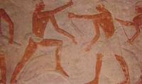 3. LAS CARNES Antes de empezar a domesticar animales, los egipcios solo podían acceder a la carne por medio de la caza. En época predinástica el clima de Egipto era bastante diferente de lo que es hoy en día. El Valle del Nilo era mucho más verde y húmedo, y por lo tanto daba cobijo a muchas más especies de animales, como por ejemplo leones, leopardos, guepardos, y gran variedad de antílopes, además de hipopótamos, cocodrilos, cerdos y avestruces, así como muchas aves acuáticas, peces tanto de mar como de río, gamos, hienas, asnos salvajes, ovejas, cabras, etc. Es posible que algunas de estas especies se cazaran solo por sus pieles o marfil, pero la mayoría proporcionaba además comida para el cazador o pescador afortunado. Esto queda atestiguado por las marcas que han aparecido en los huesos de algunas de estas especies, y que indica la manipulación del despiece. Los egipcios del predinástico domesticaron principalmente los animales salvajes locales: ovejas y cabras, bueyes, burros, cerdos y gran variedad de aves. Estas especies continuaron siendo las que proporcionaron la carne durante el periodo dinástico. En el Reino Antiguo se intentó igualmente domesticar a otras especies salvajes como por ejemplo el oryx, el íbice, la cabra montés, e incluso la hiena. Debieron tener un cierto éxito en lo referente al orix y al íbice, ya que estos cérvidos aparecen repetidamente como ofrendas en las tumbas por todo Egipto, y se encuentran huesos de ellos en tumbas y yacimientos. Es probable que estos animales se cazaran y fueran alimentados en cautividad más que propiamente domesticados (si entendemos que la domesticación implica una cría seleccionada de los animales y una preparación para servir a los humanos) También criaban gacelas para comer y como animales de compañía. Se ha debatido mucho sobre si domesticaban a las hienas para consumir su carne o para servirles como "perros" de caza. Esto parece dudoso, ya que las hienas son principalmente carroñeras. Mucho más significativa resulta la mención a las hienas en un contexto de granja, en el que aparecen cercadas y atadas, y cebadas a la fuerza junto con los patos, de manera bastante parecida a la que se utiliza hoy en día con las ocas engordadas para obtener el foie-gras. Esto nos daría pie para pensar que sí comían su carne. En cualquier caso se han encontrado pocos huesos de hiena, y la escasez de referencias a ellas en los textos nos hace pensar que no se trataba de una carne popular en el Antiguo Egipto. Solo hay una referencia a una hiena como ofrenda formal en una tumba de la IV Dinastía. Una vez que los egipcios hubieron domesticado a los animales de su dieta, y hubieron establecido rebaños de ellos, contaron con una fuente de proteínas al alcance de su mano y ya no necesitaron cazar. Si lo hacían era solo por deporte -principalmente la realeza y la clase dirigente, o bien para asegurarse un suministro extra de carne sin diezmar sus rebaños. Hacia el Reino Medio las cacerías decrecieron porque la caza escaseaba debido en parte al cambio climático y en parte al exceso de capturas anteriores, por lo que recurrieron a los animales de los rebaños. No obstante durante todo el periodo dinástico los más pobres seguían cazando para comer, ya que tenían pocos animales domésticos, y preferían conservarlos para la producción de leche y sus derivados. Los bóvidos eran los animales domésticos mas importantes para los egipcios. Las vacas y bueyes eran muy valorados e incluso adorados en Egipto (y también en otras culturas de la antigüedad), ya que reúnen gran parte de las necesidades nutricionales del hombre. Además de la carne, la grasa y el tuétano, el ganado vacuno proporciona leche, y de ella crema, mantequilla y queso. Según las pinturas y los textos, los bóvidos que comían los egipcios eran principalmente bueyes (machos castrados) y toros. Aunque ocasionalmente se sacrificaba a las vacas, preferían la carne de buey, ya que al tratarse de animales castrados, engordaban mucho aunque comieran lo mismo que las vacas y los toros, y , por lo tanto, su cría era más económica. Además, al no producir leche, los bueyes eran más apropiados para proporcionar carne que las vacas. También se sabe que cebaban al ganado previamente al sacrificio. Había distintos tipos de bueyes, el iwa, o buey africano de gran tamaño, buena cornamenta y marcha rápida que con alimentación adecuada llegaba a ser enorme y pesado. Lo vemos en las procesiones de Abydos y de Medinet-Habu. Los wndju eran unos bueyes mucho más pequeños y generalmente sin cuernos. Los nega eran otros bueyes de buena cornamenta, pero de carácter más huraño que los iwa y que no se dejaban cebar, por lo que siempre se los representa delgados. El buey llamado herysa era probablemente el más hermoso del establo. La mayor parte de las ofrendas de carne que se han encontrado en las tumbas, momificada o no, procede de bueyes. Consumían todas las partes del buey, incluidos la mayoría de los órganos internos -entre los que el hígado se consideraba el más sabroso. Los cortes más selectos eran las caderas y el lomo, mientras que los menos valorados eran la pata y el rabo. Había un corte particularmente curioso que solo utilizaron los antiguos egipcios y que eran secciones de vértebras. Cocinaban seis u ocho vértebras separadas de las costillas; aunque esto les proporcionaba poca carne, parece que era muy estimado, como queda probado por su frecuente presencia entre las ofrendas momificadas que se encontraron en las tumbas del Reino Nuevo. Entre los animales domésticos, cabras y ovejas seguían al ganado vacuno en importancia. Como las vacas, también proporcionaban leche y productos lácteos. Las ovejas eran muy valoradas por la grasa que almacenaban en sus caderas. Esta grasa les era de mucha utilidad en la cocina, y en la preparación de medicinas, perfumes y ungüentos. Las ovejas y las cabras se despiezaban del mismo modo q