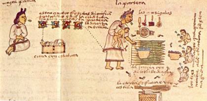 “Que el mantenimiento principal es el maíz del cual hacen diversos manjares y bebidas como lo beben, les sirve de comida y bebida.. Que hacen del maíz y del cacao molido una a manera de espuma muy sabrosa con que celebran sus fiestas y que sacan del cacao una grasa que parece mantequilla y que de eso y del maíz hacen otra bebida de la sustancia del maíz molido crudo, que es muy refrescante y sabrosa