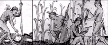 Los emigrantes esclavos de Nueva Guinea, quienes habían aprendido a cultivar la yuca en las islas caribeñas; transplantada a las zonas azucareras de la Nueva España, la sembraron como alimento complementario alrededor de los campos de cultivo de caña de azúcar, en los caminos y guardarrayas. Así, la yuca en la Nueva España es resultado de la fusión de la cultura negra de la siembra del ñame y la antillana yuca.
