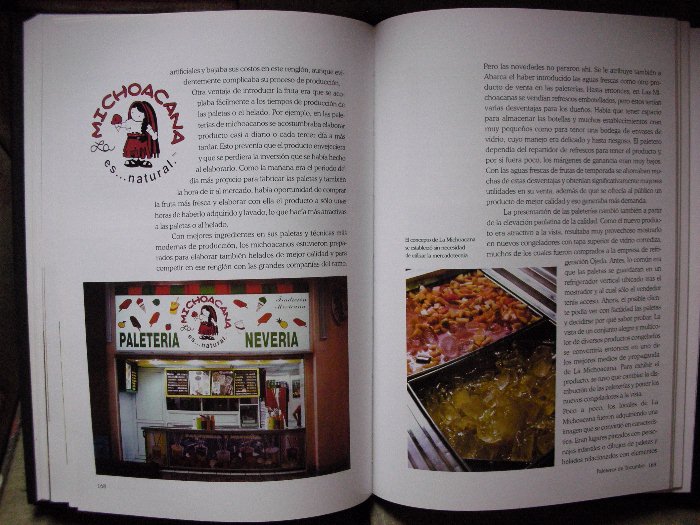 En nuestros días, las heladerías en México son sumamente visitadas porque usualmente tienen, además de las paletas, las diversas maneras en la que los helados o nieves se ofrecen, como los preparados con bebidas gaseosas. Otro producto que las personas consumen son las aguas frescas, hechas de diversas frutas o sus semillas. Martínez de la Vara analiza con minuciosidad la manera como se instalaron los primeros negocios de helados en México durante el siglo XX, tanto los creados por mexicanos como los pertenecientes a empresas extranjeras. Pero lo más impactante de su libro es la narración del origen de las llamadas paleterías “La Michoacana” que tiene que ver con un pequeño poblado de Michoacán llamado Tocumbo en donde se realiza una feria conmemorativa de los helados y paletas cada año en el mes de diciembre.