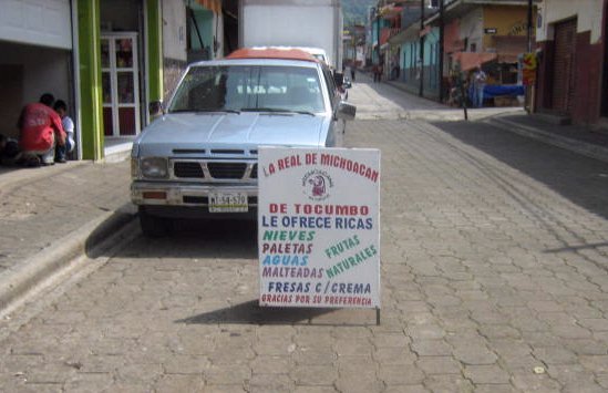 [1] Fotografía sacada por la autora de este artículo en agosto de 2009. Los objetos que acompañan a la paleta de vainilla, es decir, el colorido mantel, las bellas artesanías, los textos de Diálogo de doctrina christiana en la lengua de Mechuacan (1559) de fray Maturino Gilberti o el de La Michoacana: historia de los paleteros de Tocumbo de Martín González de la Vara, la piña de abeto, son un ejemplo del patrimonio histórico cultural tangible e intangible de Michoacán. [2] Martín González de la Vara, La Michoacana: historia de los paleteros de Tocumbo, México, El Colegio de Michoacán, Gobierno del Estado de Michoacán, 2006, p. 73 y ss. [3] Ibid., pp. 168-169. [4] Nótese cómo dice “de Tocumbo” para garantizar su calidad. Fotografía sacada por la autora de este artículo en julio de 2008. [5] Martín González de la Vara, op. cit, p. 196. [6] Recetario de mi abuela Luz María Sevilla de Guillaumin. |
