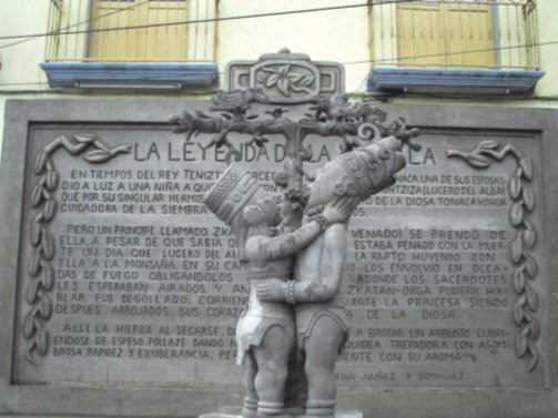 Esta escultura está en el centro de la Ciudad de Papantla. En la parte de atrás está la leyenda de la vainilla. Está firmada por el escritor José de Jesús Núñez y Domíguez[3]