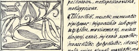 Imagen y texto sobre la vainilla, tlilxóchitl, en el Códice Florentino[11]