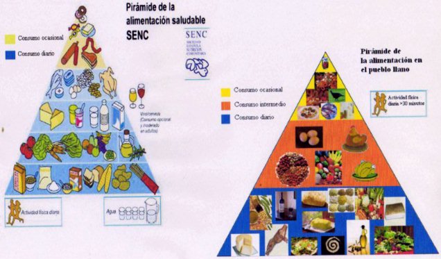 Esta tabla comparativa de las dos pirámides de alimentación, es solo a título general, ya que no todo el pueblo llano comía igual: no tenía nada que ver, la alimentación de un campesino de Castilla, con la de un habitante de la costa de Huelva por ejemplo, ni la de un labriego acomodado, con la de un pícaro de una ciudad como Sevilla. La información anterior la hemos encontrado en la literatura del Siglo de Oro español, en obras que van desde “El Buscón” al “Quijote”, por eso la pirámide del pueblo llano tiene un abanico tan amplio de consumo de alimentos aunque realmente sabemos que mucha gente se moría literalmente de hambre. Podemos señalar que el consumo de grasas saturadas (tocino, carnes grasas) era más alto de lo deseable y más bajo el de las insaturadas, presentes en el aceite de oliva o en pescados. El aporte proteico total era más bajo del que debiera. Tomaban pocas carnes magras debido a su elevado coste, siendo el pescado el más consumido en la costa y en días de vigilia en el interior, siendo estas raciones demasiados escasas para una alimentación equilibrada. El consumo de huevos también era bajo, y los lácteos están representados por el queso, ya que se reservaba la leche únicamente para los lactantes. Los hidratos de carbono, estaban representados mayoritariamente por el consumo de pan, base de la alimentación de este estamento, al que su ración se iguala a la deseada. En cuanto a las legumbres, al ser baratas y conservarse secas bastante tiempo, eran de uso común, siendo muy apreciados los garbanzos, y las raciones consumidas eran las adecuadas. La ingesta de verduras y hortalizas, también coincidían con nuestra ingesta actual, pero la de fruta era más bien estacional y escasa. Como hemos comentado en otros estamentos, se consumía poco agua debido a la insalubridad de ésta, siendo demasiado elevado el consumo de vino, que era uno de los principales aportes calóricos de la dieta a falta de otros alimentos. El ejercicio físico era intenso, debido al trabajo agrícola o de los artesanos (herreros, carpinteros, labores domésticas, constructores…) sobrepasando con creces los treinta minutos recomendados por el SENC 2004. |